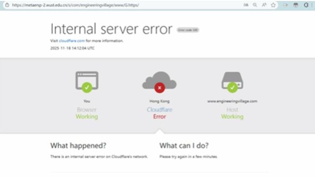 说明您当前下载次数过于频繁,或者当前服务器繁忙,需要等待片刻再进行访问。 【ScienceDirect技术反馈】 当系统检测到可疑活动时,会暂时阻止对 ScienceDirect 的访问。一些可能看起来可疑的活动包括: 来自特定位置或 IP 地址的过度使用活动。 猜测密码次数过多。 一小时后,您应可以再次登录并恢复之前的活动。如果您的访问权限在一小时后仍未恢复,请联系您所在机构或公司的图书馆员或数字访问管理员。 ❗ 若多次刷新或等待尝试无效,请联系图书馆技术部: 答疑QQ群:345514337(推荐) 电话咨询:68862012(工作日9:00-17:00) Q2:登录提示用户名/账号密码错误/忘记密码? 图书馆的用户名和密码与学工号保持一致,读者账号即为学校统一身份认证平台的账号和密码。 忘记密码:通过学校统一认证平台【找回密码】功能重置。 ❗ 仍无法解决:联系网络信息中心 ☎ 电话:68862223 | 邮箱:support@wust.edu.cn Q3:其他问题? 可以根据下面的故障排查流程进行自检。如果发现无法解决您的问题,可以尝试加入科大图书馆技术平台答疑群:345514337,在群里进行提问。 4、故障排查流程 请根据以下流程自助排查: a)无法登录认证页面: